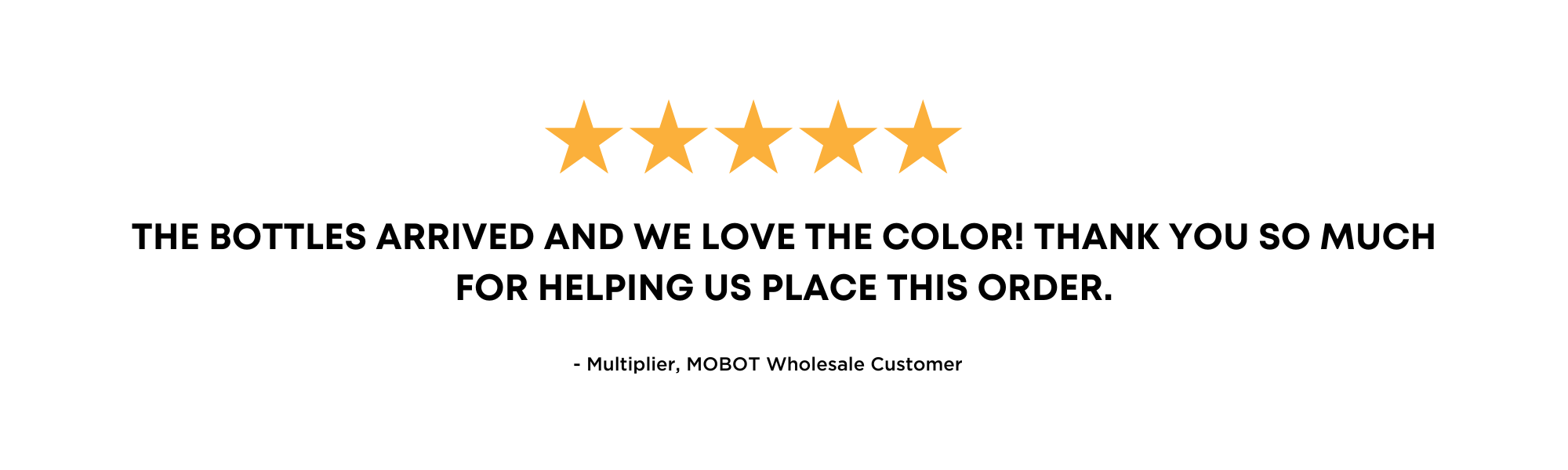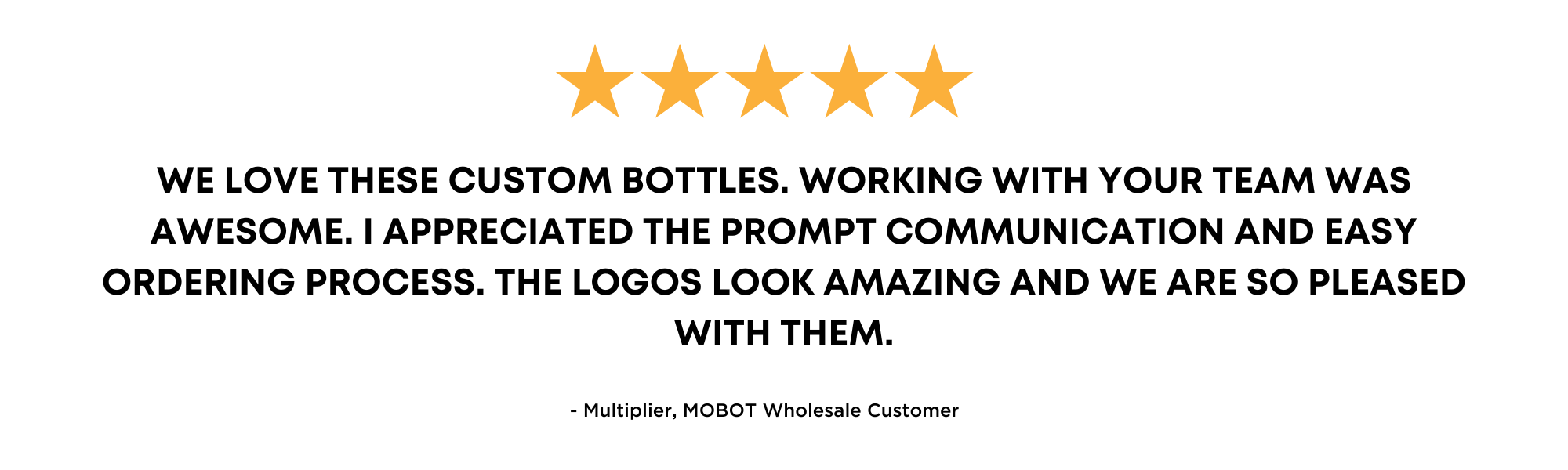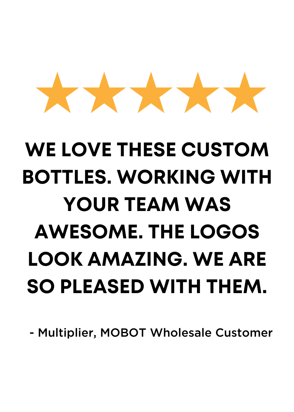 Welcome new team members, clients, and customers with a branded custom MOBOT featuring your company logo on one side of our core MOBOT color bottles.